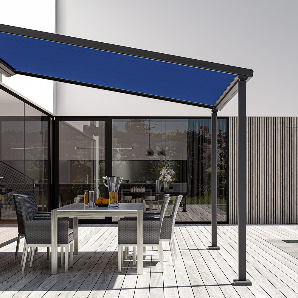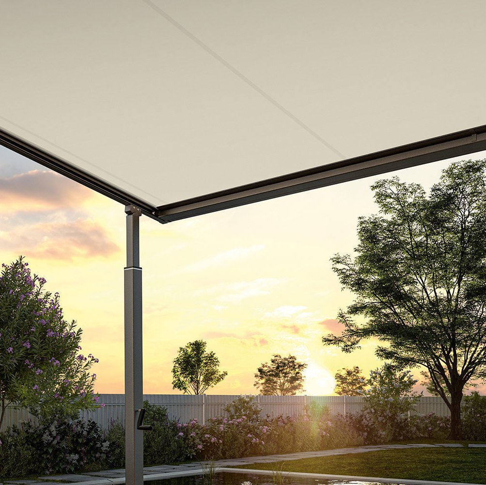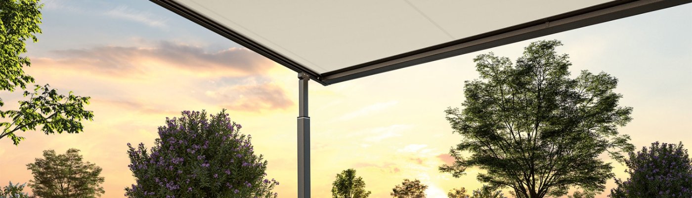 Als terrasluifel met vrijstaande kolommen is de pergola een bijzondere windstabiele vorm van zonwering. Dankzij de gesloten zijgeleiding zit het doek van het zonnescherm altijd strak, wat voor een vrijwel naadloze zonwering en perfecte look zorgt. Voor meer flexibiliteit en gezelligheid op het terras is deze pergola ook verkrijgbaar met Vario-kolommen. Zo kunnen de voorste hoeken van het scherm worden verlaagd – voor een variabele zonwering en ontspannen buitenleven met voortreffelijk comfort.